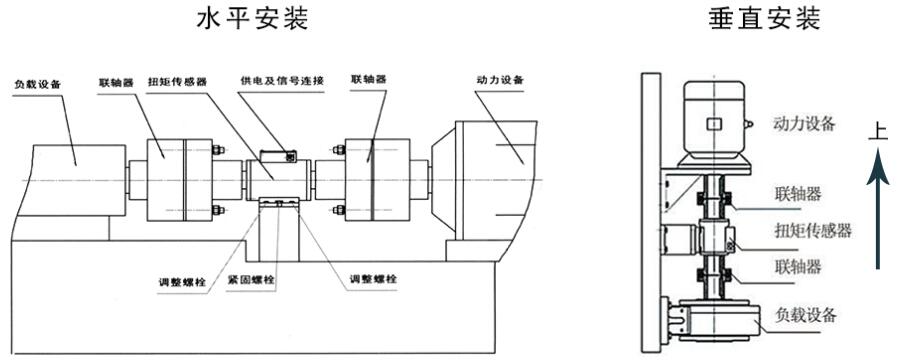 3、使用两组联轴器或法兰,将传感器安装在动力设备与负载之间。