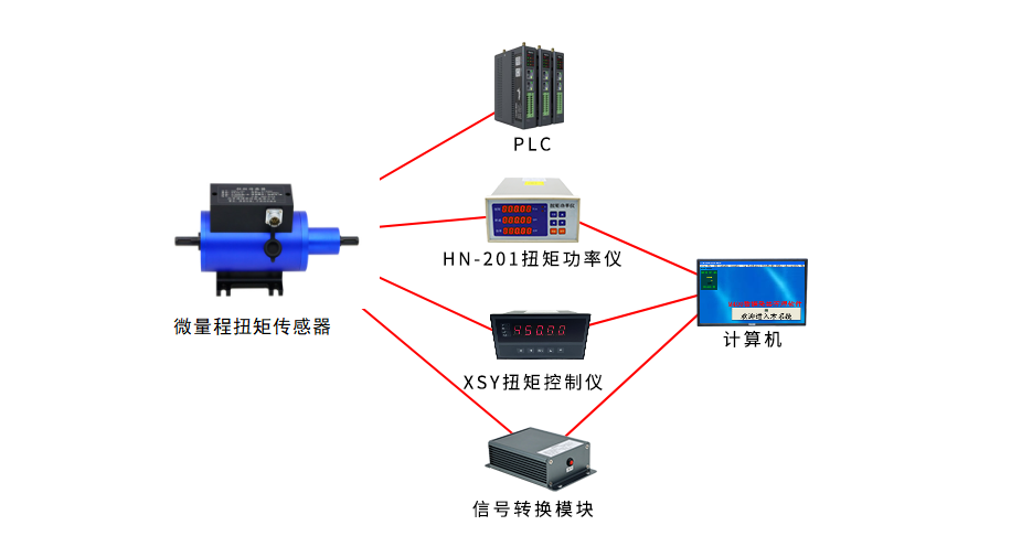8、传感器部分可脱离二次仪表独立使用,直接与测量板卡、PLC或DCS组成扭矩测量装置。