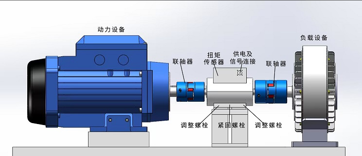 2、使用两组联轴器或法兰,将扭矩传感器安装在动力设备与负载之间。