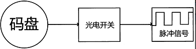 转速工作原理: 码盘与旋转体集成一体,进行旋转。光电开关通过光电效应,做门电路处理,输出一个高低电平脉冲信号。脉冲信号比例于转速。实现了物理量转速到电信号的转化。