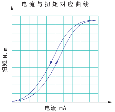 ◆励磁电流与输出转矩基本成比例关系,传送转矩在额定值的5-100%范围内可以被控制,输出扭矩为额定扭矩的100%-135%,小电流可以控制输出较大的转矩。