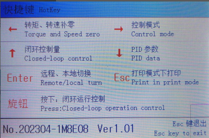 00:26:24 119.99N.m 400.00r/min 5.0265kW在主界面状态,“Esc”键用于立即打印。