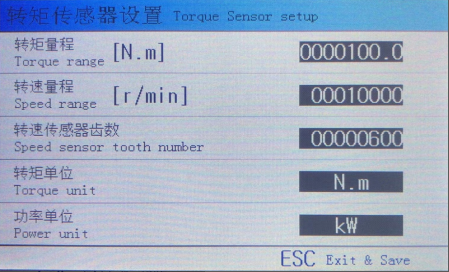 设置转矩转速传感器的相关参数,该页面的参数必须与转矩转速传感器对应。转矩量程值以及转速传感器的齿数值,用户不可随意改变,否则将导致测量错误。