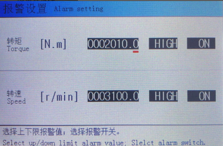 设置转矩转速报警值,选择上、下限报警。1. 转矩采样:1、2、5、10、20、50、100、200、500、1000、2000、5000、10000;